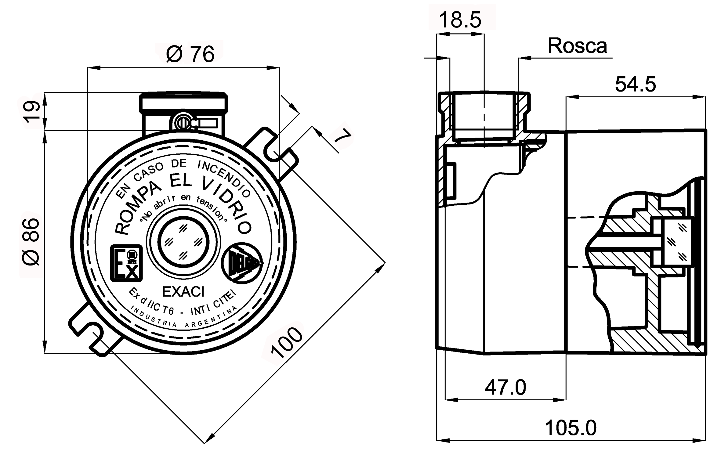 EXACI xxxx = Avisador de incendio antideflagrante EXACI modelo xxxx.
