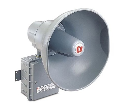 La forma única del proyector proporciona una dispersión acústica de 60°. El proyector se mantiene en su posición mediante un anillo de seguridad recubierto de teflón que puede girarse 180° para obtener la distribución acústica requerida. Todas las superficies están selladas con pintura en polvo. Las juntas a prueba de polvo y humedad proporcionan protección Tipo 4X contra los elementos. Las aplicaciones típicas incluyen avisos de emergencia, arranque y salida, alarma general y evacuación.